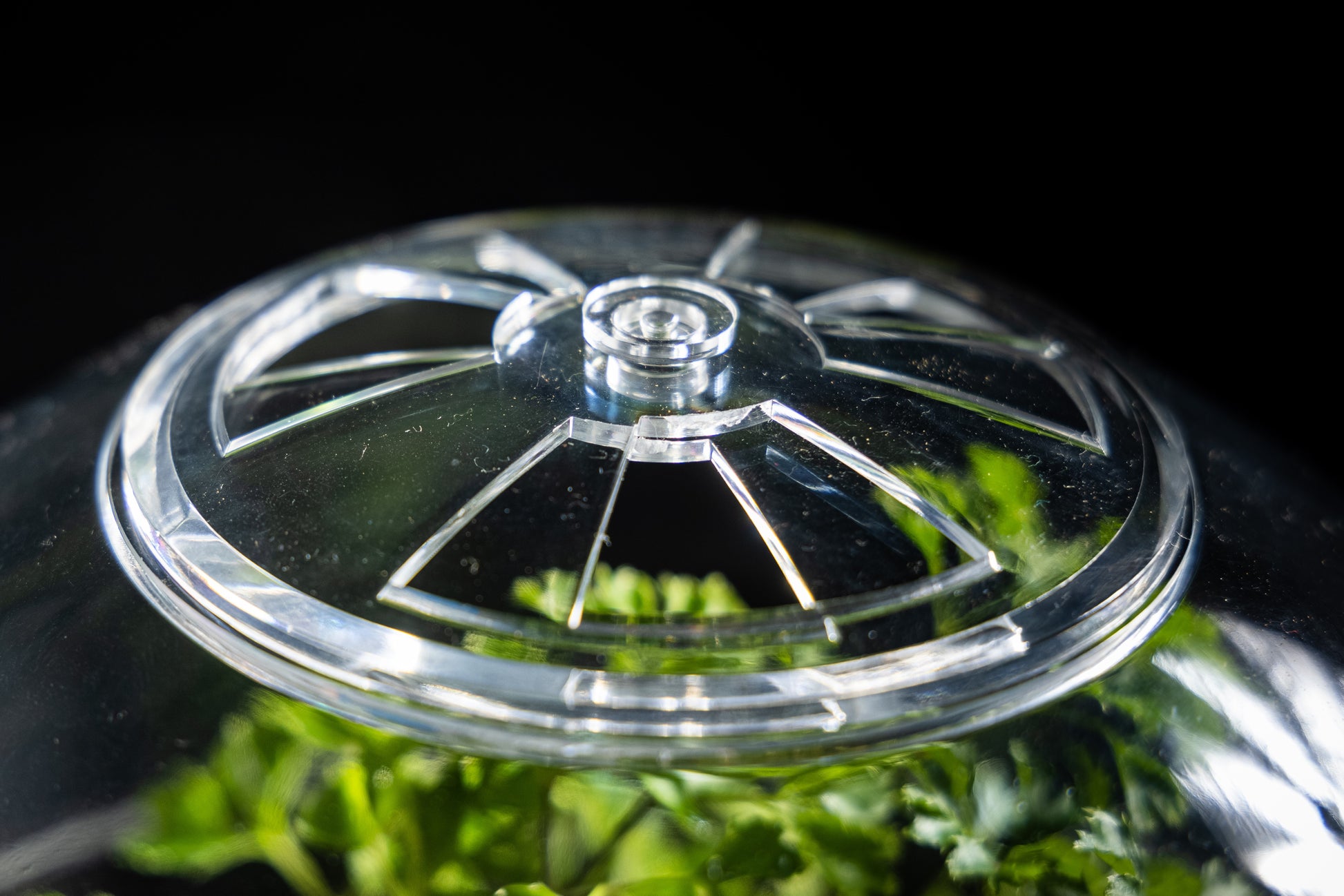 One of a kind intelligent rotatable cover design enable flexibility to control the air flow in the terrarium, maintaining a balanced ecosystem.